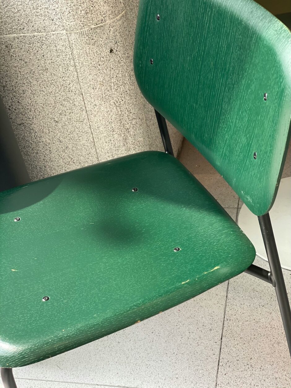 ふと、眼の前を見ると、70〜80代の女性が杖をついて柱に寄りかかって立っていた。ベンチは満席だ。花がらの杖に寄りかかるよう支所在なさげにしている。